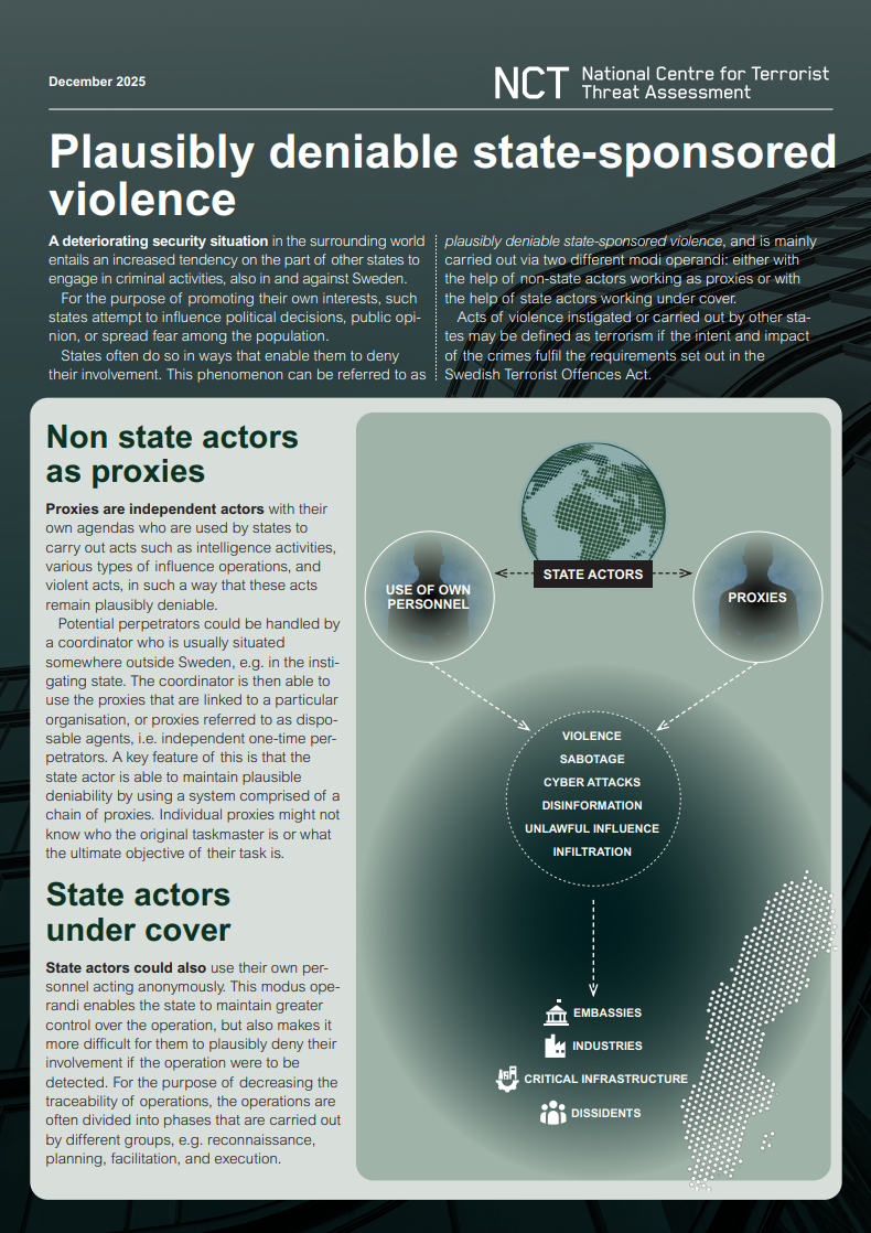 Rapporter och faktablad från Nationellt centrum för terrorhotbedömning.
